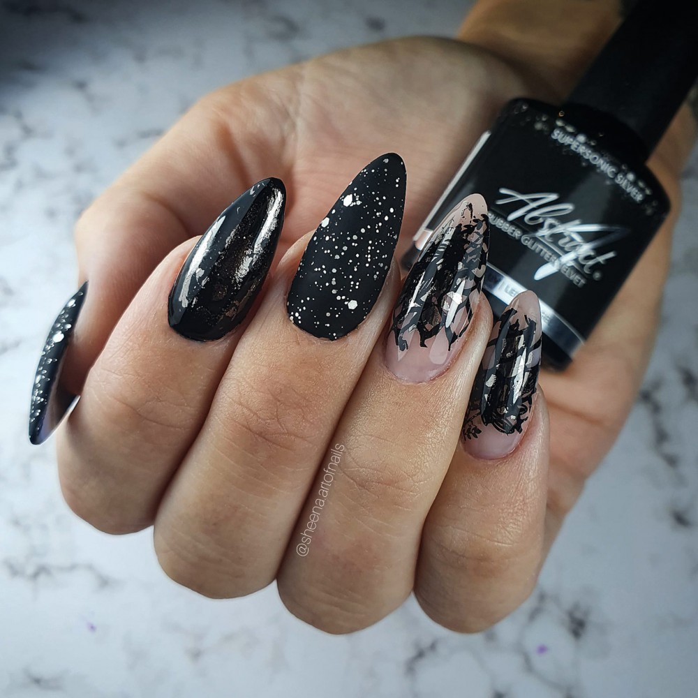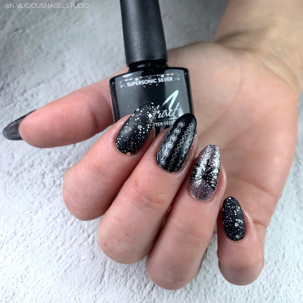 Supersonic Silver - Rubber Glitter Velvet Top Gel | Abstract